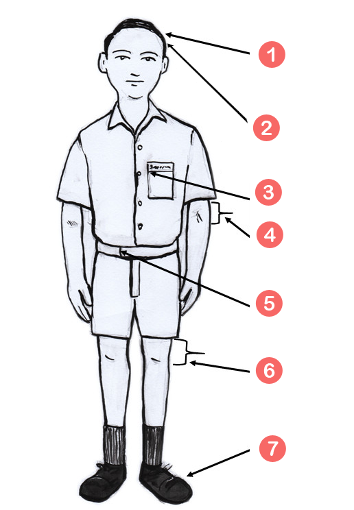 - The hair should be neatly combed so that it does not cover the ears.